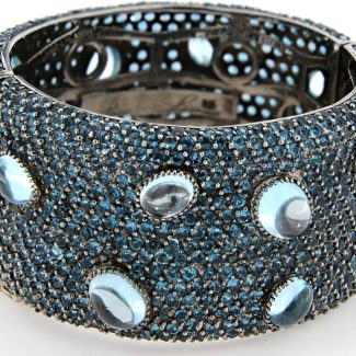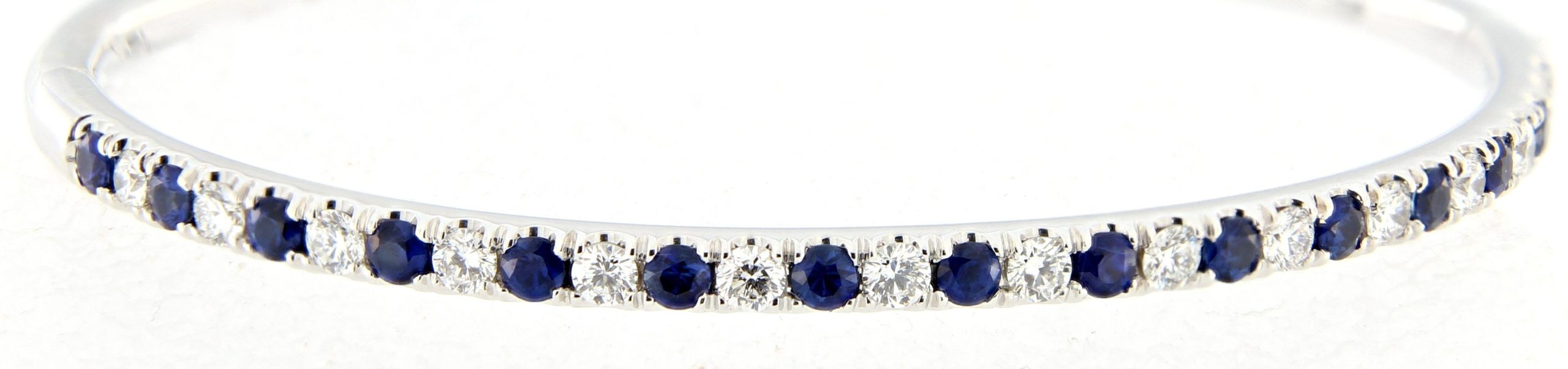 Elevate your collection with this captivating Ziva bangle, showcasing a stunning alternating pattern of brilliant diamonds and deep blue sapphires. Meticulously crafted in 14-karat white gold, this piece radiates timeless elegance and a sophisticated charm that commands attention. Featuring 1.00ctw of dazzling diamonds and 1.30ctw of rich sapphires, this exquisite bracelet offers unparalleled sparkle. It is the perfect statement piece for special celebrations or for adding a refined, luxurious glow to your everyday style.