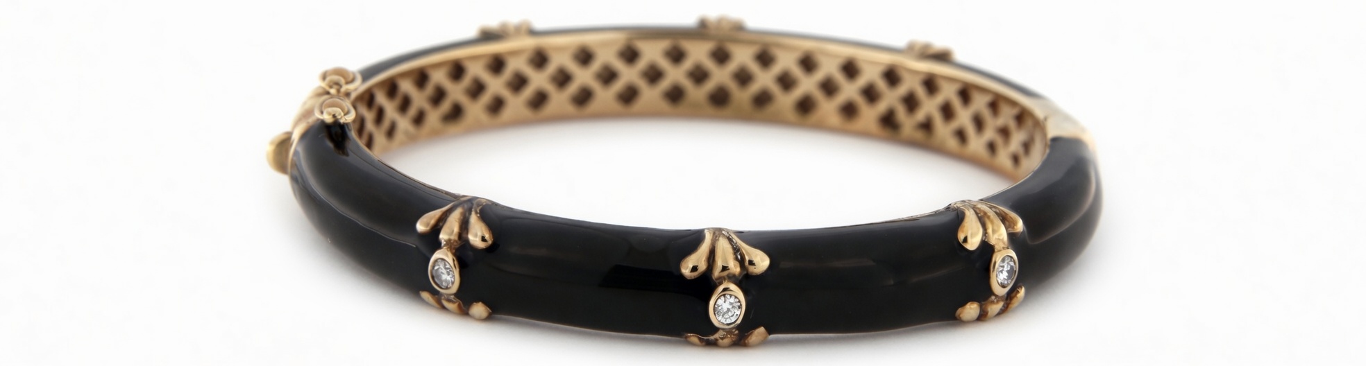 14K Yellow Gold and Sterling Silver Black Enamel Bangle with Diamonds