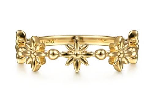 14 KARAT YELLOW GOLD FLORAL DAINTY STACKER BAND