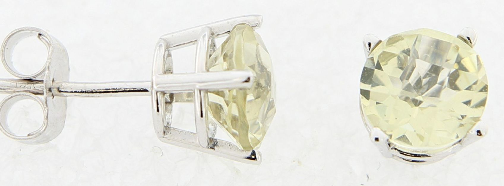 Radiate freshness with these exquisite lime quartz studs. Offering a combined 2.28 carats of brilliance and set in 14 karat white gold, these eye-catching studs bring a refreshing pop of color and sophisticated sparkle to any ensemble.