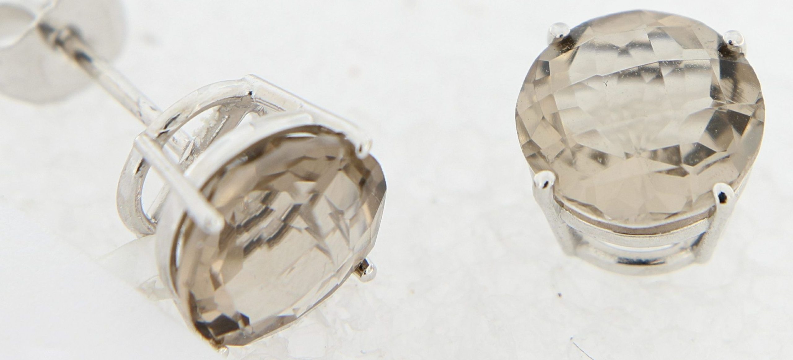 Embrace timeless elegance with these stunning 14-karat white gold studs. Featuring a pair of smoky quartz stones, these earrings boast a brilliant 3.24 total carat weight. Perfect for day or night, these classic studs provide a versatile sparkle that makes them a luxurious addition to any jewelry collection.