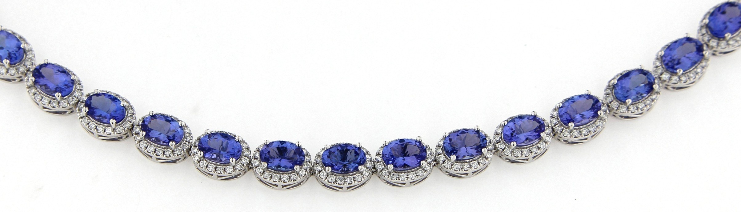Elevate your style with the breathtaking allure of this Tanzanite and Diamond bracelet. This 7-inch masterpiece features 13.75 carats of velvety, violet-blue tanzanites, each cradled in a brilliant halo of shimmering diamonds. Set in14-karat white gold, this piece captures the light from every angle, offering a regal glow that is both timeless and sophisticated. With 2.25 carats of diamonds, this bracelet is the ultimate statement of luxury. Whether it’s a milestone celebration or an elegant evening out, its exquisite craftsmanship ensures you’ll shine. Own a rare treasure today.