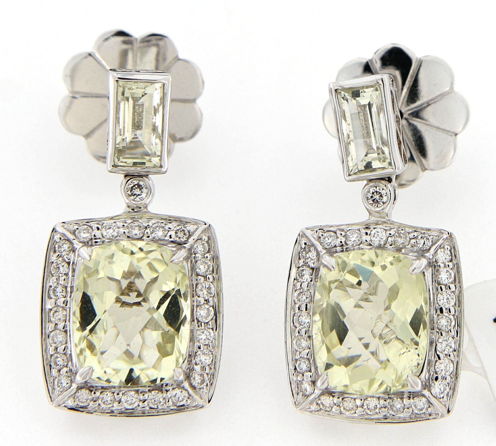 18K White Gold Diamond and Lime Quartz Earrings