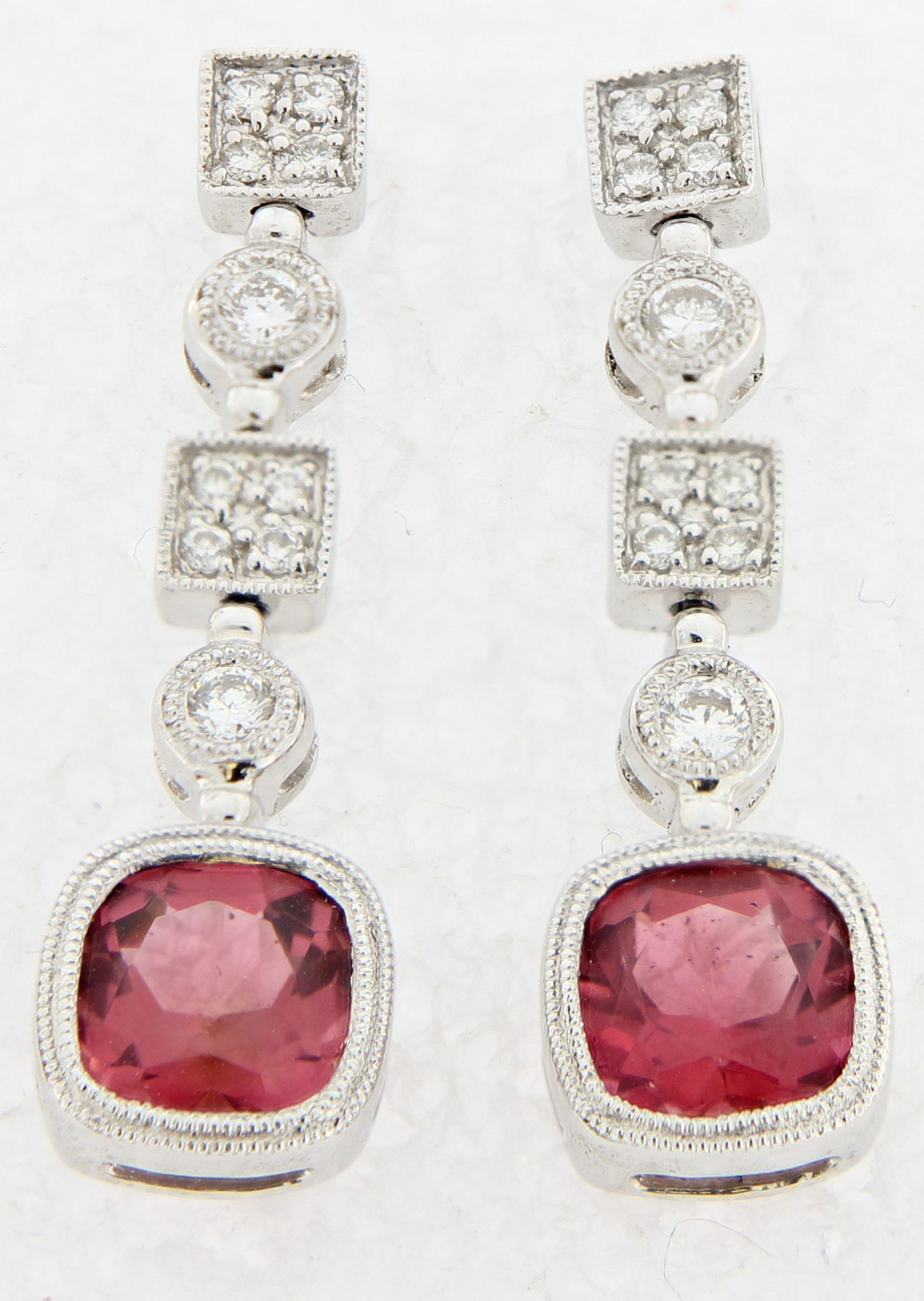 18K White Gold Pink Tourmaline and Diamond Dangle Earrings