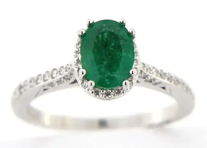 18 KARAT WHITE GOLD OVAL EMERALD IN DIAMOND TACORI DANTELA RING