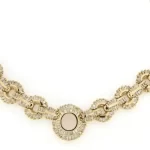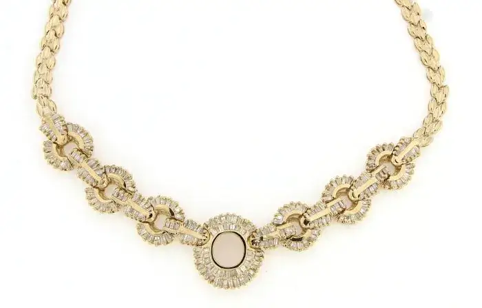 PRE OWNED 14 KARAT YELLOW GOLD BAGUETTE AND ROUND DIAMOND NECKLACE