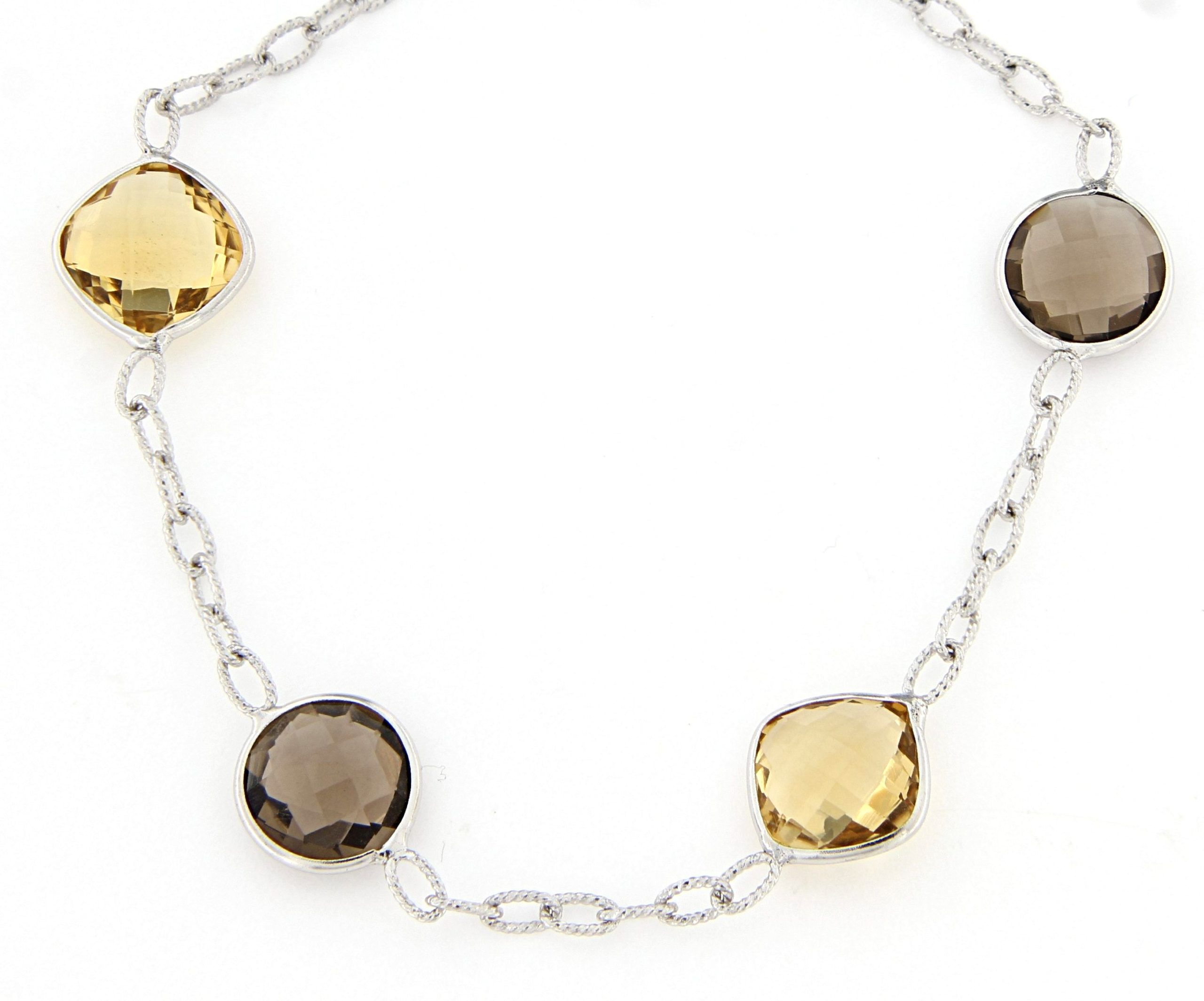 Elevate your style with the Dobbs Boston link bracelet. This masterpiece features cushion-cut citrines and round smokey quartz set against textured sterling silver. The radiant palette offers a sophisticated look that adds instant luxury to any ensemble. Meticulously crafted at 7.5 inches, this versatile accessory transitions seamlessly from professional days to glamorous nights. It is a timeless, brilliant infusion of light for your jewelry collection.