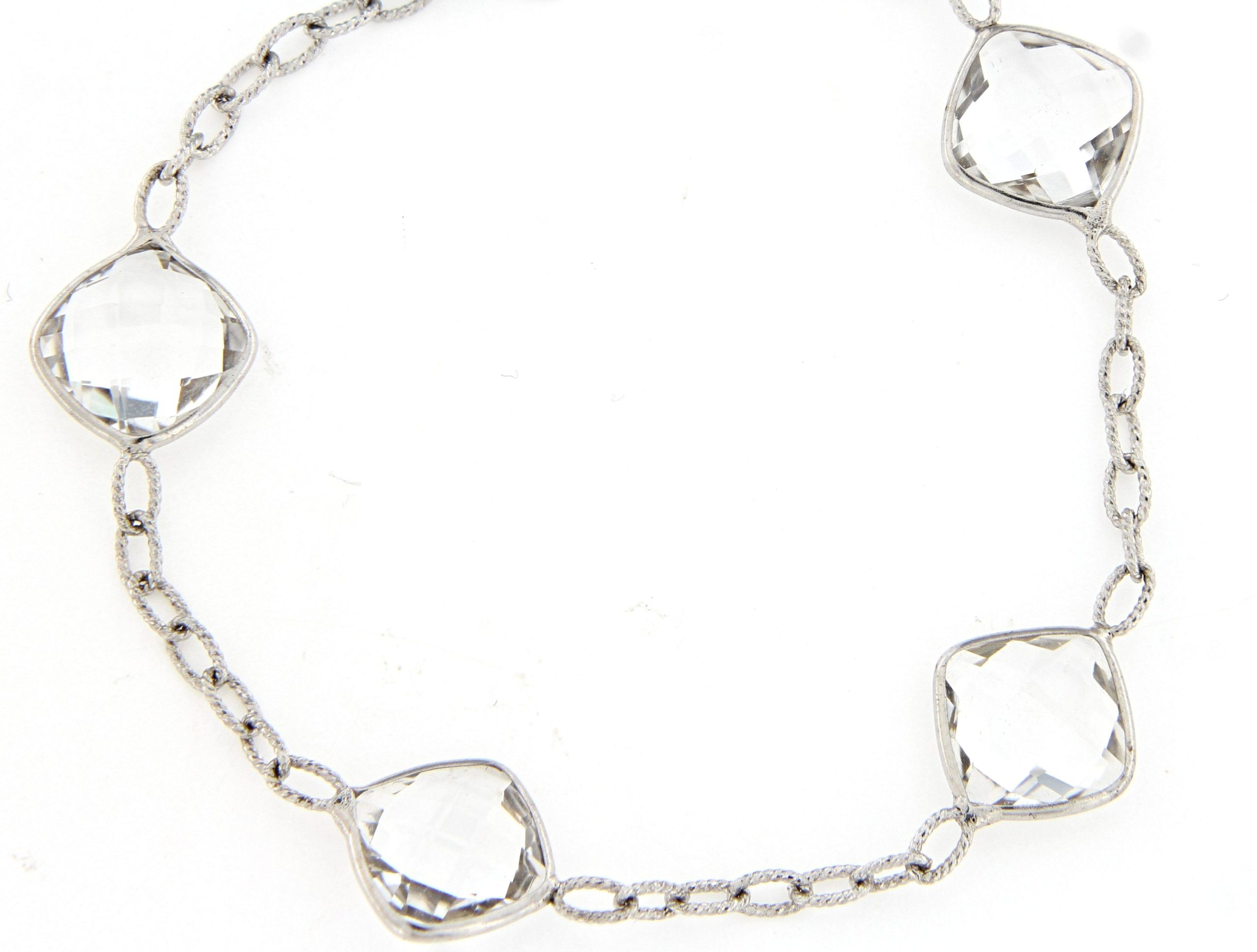 Elevate your look with the breathtaking Dobbs Boston link bracelet. This stunning piece jcrafted in sterling silver features four radiant clear agate stations that catch the light with every movement. Expertly designed to blend timeless elegance with modern flair, it’s the ultimate accessory to add a touch of sophisticated sparkle to your jewelry collection.